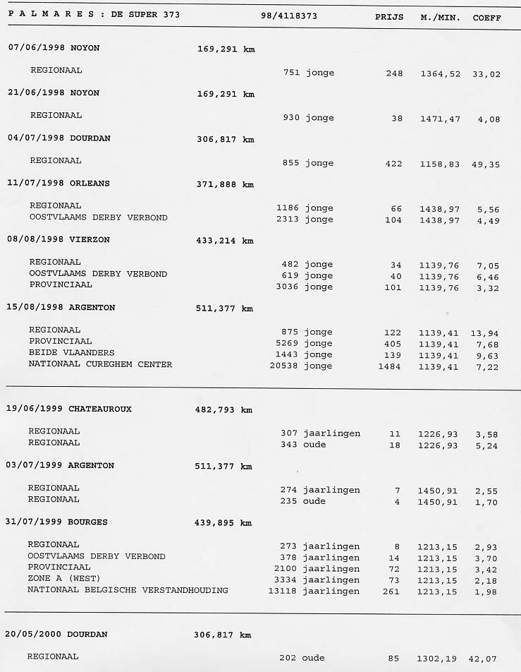 father of this pigeon is the 4417122-97, also a good flyer. He is a son of “DE